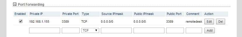 Cliccare sul menù Network in alto e poi sul paragrafo Port Forwarding