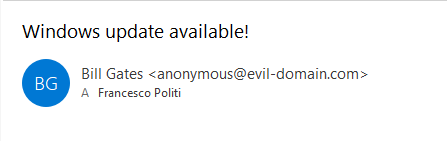 È in virtù di questo che spesso i malintenzionati impostano dei mittenti arbitrari. E’ quindi fondamentale verificare sempre quale sia l’autentico mittente del messaggio che si sta leggendo.