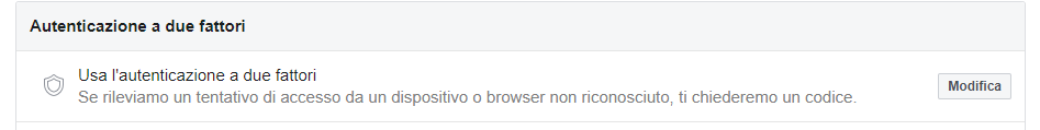 In corrispondenza del menu Autenticazione a due fattori, scegliamo Modifica: