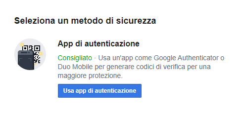 Nel menu Seleziona un metodo di sicurezza, tra le varie opzioni, scegliamo Usa app di autenticazione: