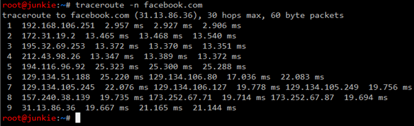 Vediamo un esempio che illustra gli hop verso il sito facebook.com:
